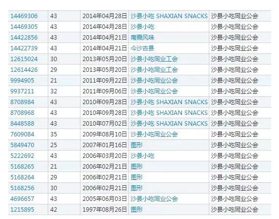 不僅如此,沙縣小吃同業工會還注冊了小部分防御型商標,甚至將特色食品也進行了注冊。